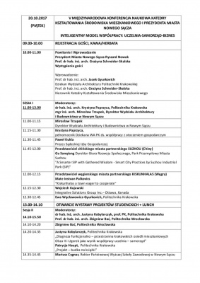 W inauguracji V Międzynarodowej Konferencji Naukowej "Środowisko miejskie. Inteligentny model współpracy: Uczelnia - Samorząd - Biznes" wzięli również udział między innymi: reprezentująca Wojewodę Małopolskiego Piotra Ćwika Małgorzata Mordarska-Duda, kierownik delegatury Urzędu Wojewódzkiego w Nowym Sączu, dr hab. inż. Marek Stanuszek, prorektor ds. studenckich Politechniki Krakowskiej, prof. dr hab. inż. arch. Wojciech Bonenberg, zastępca przewodniczącego Komitetu Architektury i Urbanistyki Polskiej Akademii Nauk, prof. dr hab. inż. arch. Jacek Gyurkovich, dziekan Wydziału Architektury Politechniki Krakowskiej, dr hab. inż. arch., prof. PK Magdalena Jagiełło-Kowalczyk, dyrektor Instytutu Projektowania Urbanistycznego, Jacek Lelek, burmistrz Starego Sącza, Dariusz Reśko, burmistrz Krynicy-Zdroju, Paweł Kukla, prezes Sądeckiej Izby Gospodarczej, goście z miast partnerskich, w tym przedstawiciele z Parku Przemysłowego chińskiego miasta Suzhou oraz goście węgierskiego miasta Kiskunhalas, a także przedstawiciele sądeckich przedsiębiorców, organizacji zawodowych i stowarzyszeń oraz środowisk naukowych z Nowego Sącza, Poznania, Szczecina, Wrocławia, Lublina, Raciborza.