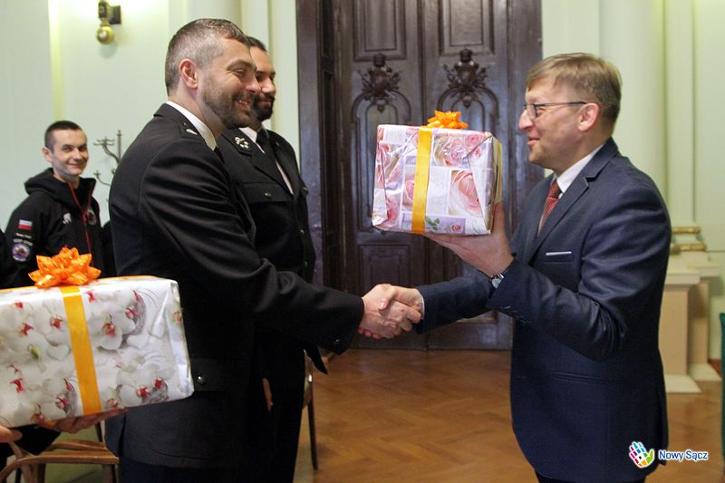Przekazanie sprzętu miało miejsce w sali reprezentacyjnej sądeckiego ratusza. - Bardzo sobie cenimy jako społeczność lokalna to, co państwo – straż pożarna i jej ochotnicze formacje - robicie dla naszego bezpieczeństwa i chyba nigdy nie znajdziemy sposobu i prawdziwej formy, żeby w pełni za to podziękować – powiedział Wojciech Piech do druhów.
