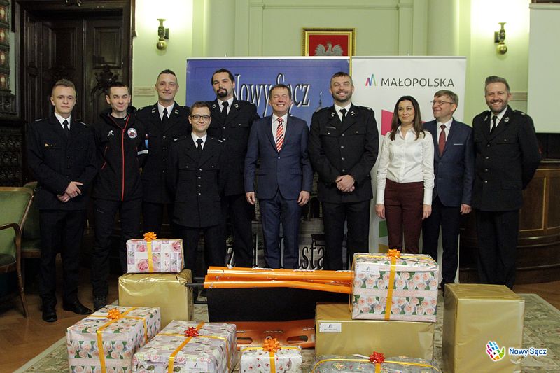 Nowy sprzęt dla sądeckich druhów. Ochotnicza Straż Pożarna - Grupa Ratownictwa Specjalnego w Nowym Sączu otrzymała sprzęt do ratownictwa, ufundowany Urząd Marszałkowski Województwa Małopolskiego. Dar przekazali strażakom zastępca prezydenta Nowego Sącza Wojciech Piech i dyrektor Wydziału Zarządzania Kryzysowego i Ochrony Ludności Marek Nieć.
