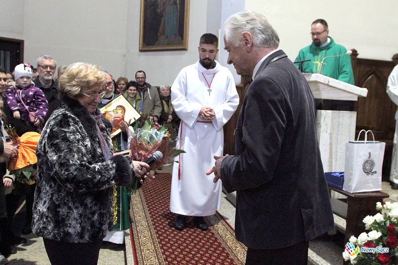 Stanisław Wolak podczas nabożeństwa nie opuścił swojego posterunku i tradycyjnie poprowadził działający przy kościele kolejowym chór im. Jana Pawła II. Wywołany przed ołtarz, poza życzeniami i gratulacjami otrzymał wiele symbolicznych podarunków. Wśród nich znalazły się dowody pamięci i uznania od władz miasta Nowego Sącza, wręczone przez zastępcę prezydenta Wojciecha Piecha i przewodniczącą Bożenę Jawor.