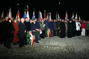 Po mszy liczne poczty sztandarowe zakładowych i branżowych związków zawodowych „Solidarność”, szkół, organizacji kombatanckich, gospodarze miasta i powiatu, byli i obecni członkowie związku zgromadzili się przed pomnikiem. Przewodniczący Rady Miasta Jacek Chronowski, wiceprzewodniczący Zarządu Regionu Małopolska NSZZ „Solidarność” Andrzej Szkaradek mówili o wydarzeniach sprzed 25 lat, o ich znaczeniu dla dzisiejszej Polski i Europy.