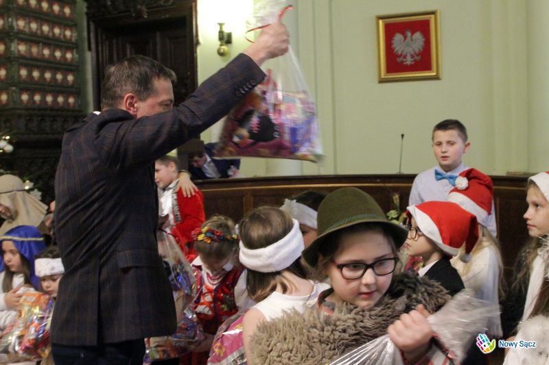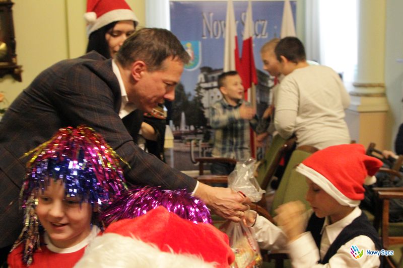 Dzieci z 15 nowosądeckich świetlic środowiskowych odwiedziły ratusz. Małych gości, którym towarzyszył św. Mikołaj, przyjął zastępca prezydenta naszego miasta Wojciech Piech.