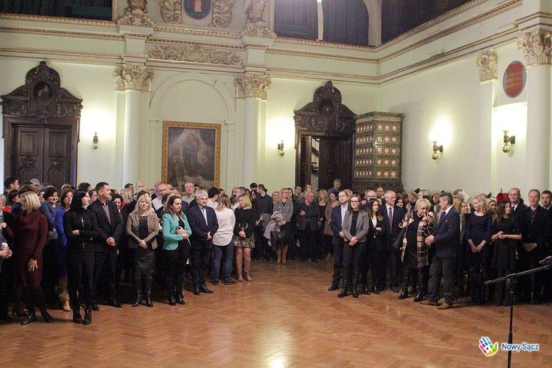 Symboliczne prezenty wręczyli także prezydentowi Ryszardowi Nowakowi i jego zastępcom pracownicy. W świąteczny nastrój wprowadził zebranych swoimi sądeckimi kolędami i pastorałkami Tomasz Wolak.