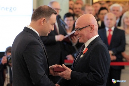 Na zdjęciu: prezydent Andrzej Duda wręcza prezydentowi Ryszardowi Nowakowi Krzyż Kawalerski Orderu Odrodzenia Polski (2017). Fot. Krzysztof Witowski (archiwum UM)