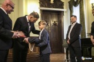 Następnie w sali reprezentacyjnej spotkał się z 12-letnim Michałem, uczniem VI klasy szkoły podstawowej, który jest także ministrantem. Kiedy chodząc z księdzem po kolędzie, zobaczył w jakich warunkach żyje 70-letnia głuchoniema, niepełnosprawna ruchowo kobieta, tak się przejął, że oddał jej wszystkie pieniądze, jakie uzbierał podczas kolędy. Było to 200 złotych. Michał nie poprzestał na tym i namówił swoich kolegów i koleżanki ze szkoły, aby wspólnie zorganizować akcję, polegającą na sprzedaży wypieków. Za tak uzbierane pieniądze dzieci zakupiły i przekazały kobiecie rzeczy codziennego użytku.