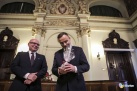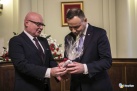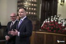 Prezydent Duda wchodząc do ratusza, złożył kwiaty pod tablicą poświęconą świętej pamięci profesorowi Lechowi Kaczyńskiemu oraz świętej pamięci Ryszardowi Kaczorowskiemu.