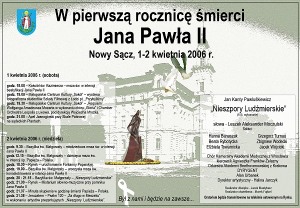 Oto program obchodów pierwszej rocznicy śmierci Ojca Świętego Jana Pawła II w Nowym Sączu: