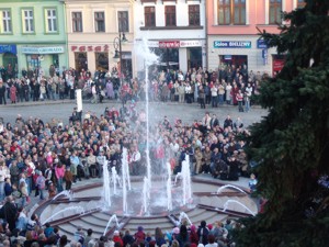 Na zakończenie tłumy sądeczan zgromadzone na rynku obejrzały – dzięki uruchomionej Fontannie Papieskiej - spektakl światło-dźwięk. Strumienie fontanny, kolorowo oświetlone, poruszały się do muzyki m.in. Richarda Straussa (Zarathustra), Antonio Vivaldiego (Cztery pory roku), Fryderyka Haendla (Alleluja), Mozarta (Eine Kleine Nacht Muzik), Henry Purcella oraz Vangelisa (Conquist i Rydwany ognia).