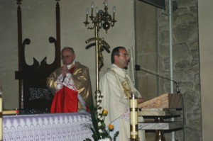 Okolicznościową homilię wygłosił dyrektor Gimnazjum i Liceum Katolickiego im. Jerzego Frassatiego ks. Jerzy Kochaniewicz. W mszy św. uczestniczyli przedstawiciele władz miasta z prezydentem Józefem Antonim Wiktorem na czele, parlamentarzyści, liczne rzesze sądeczan z darczyńcami pomnika i fontanny na rynku, Józefem i Marianem Koralami.