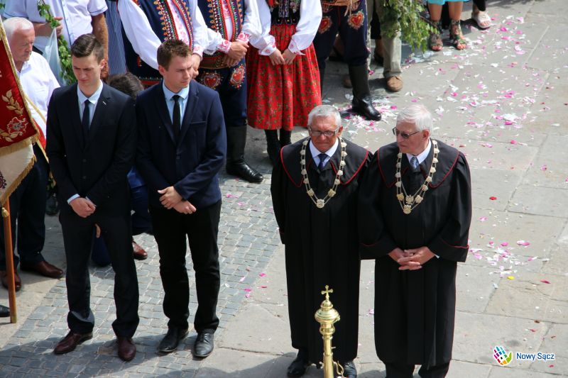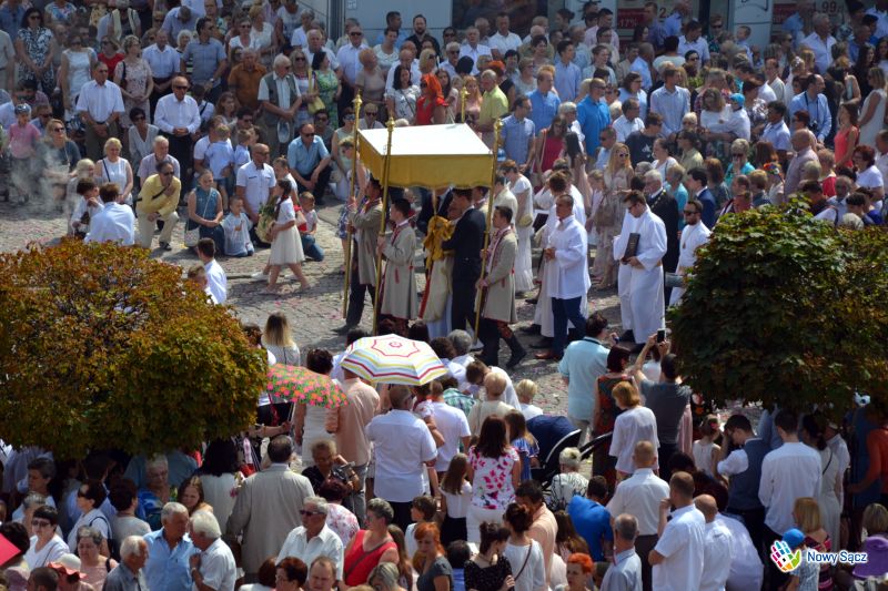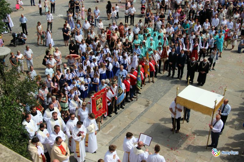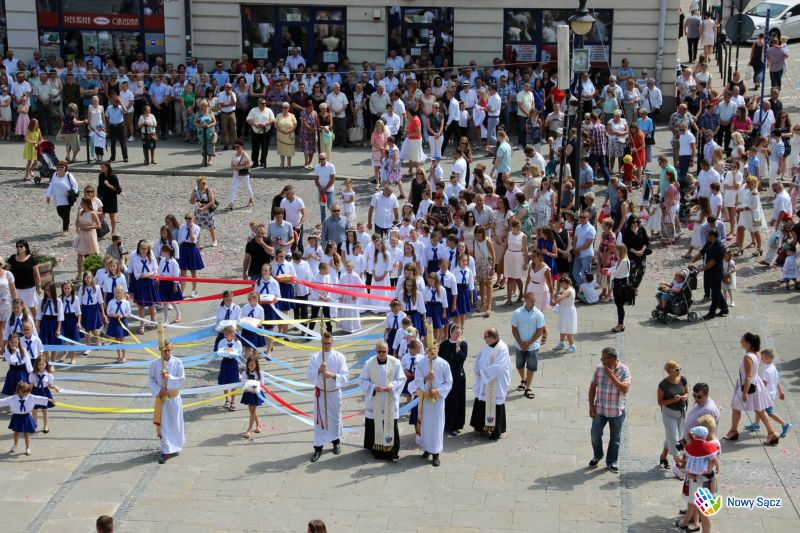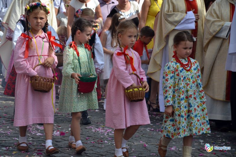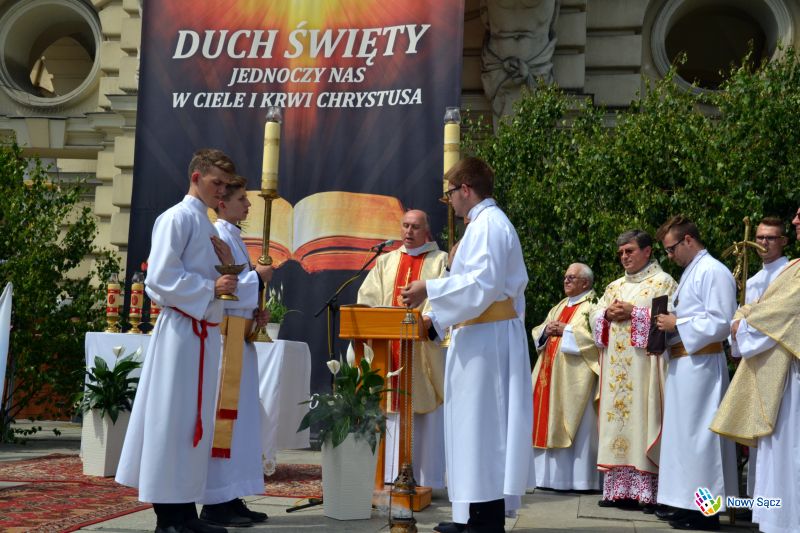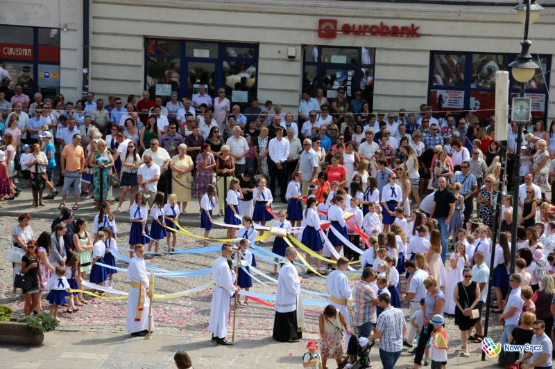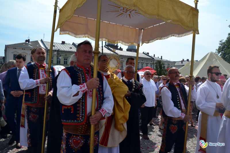 W procesji w Nowym Sączu uczestniczyli księża ze wszystkich miejskich parafii, poczty sztandarowe różnych instytucji oraz między innymi dzieci: ministranci, dzieci, które w tym roku po raz pierwszy przyjęły Komunię Świętą, dziewczynki sypiące kwiaty i chłopcy z dzwonkami.