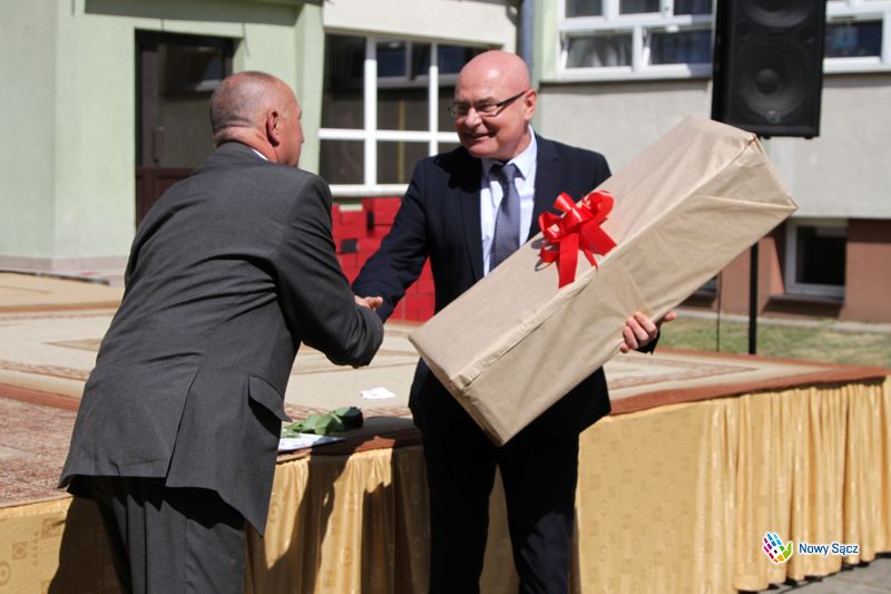 Prezydent podziękował gronu pedagogicznemu za zaangażowanie. - To efekt Waszej pracy i za tę pracę dziękuję. Życzę kolejnych, tak bogatych jak dzisiejszy, jubileuszy – dodał prezydent Ryszard Nowak, a następnie przekazał dyrektorowi Włodzimierzowi Strzelcowi tory do nowej bieżni.