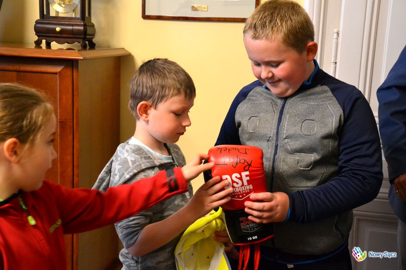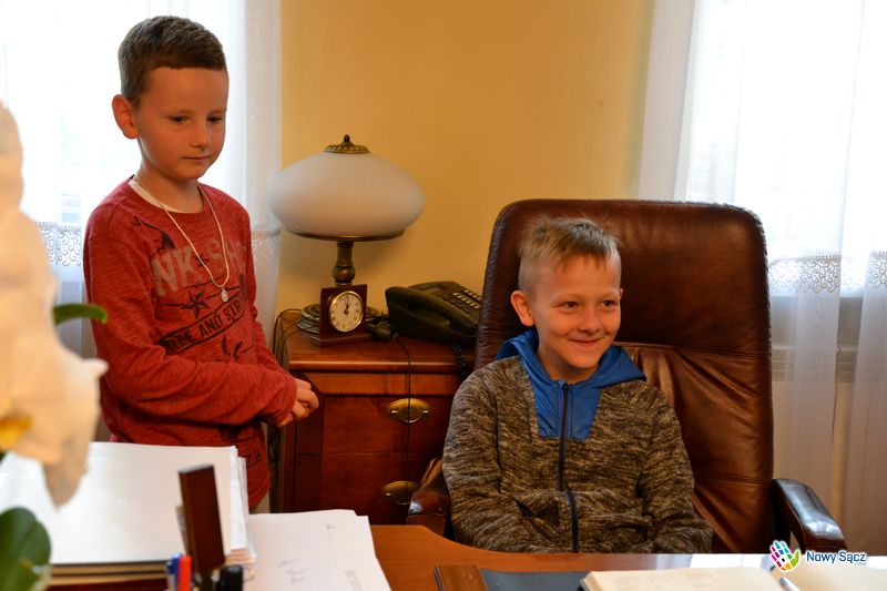 Prezydent dostał od dzieci pióro z wygrawerowanym napisem "Prezydent Miasta Nowego Sącza Ryszard Nowak", a w zamian poczęstował je cukierkami. Pozwolił też dzieciom posiedzieć na swoim fotelu, co było największą atrakcją spotkania oraz pooglądać pamiątki, jakie otrzymywał z okazji wizyt różnych osób i organizacji czy nagród i wyróżnień.