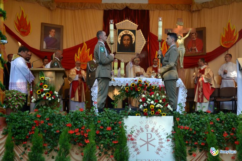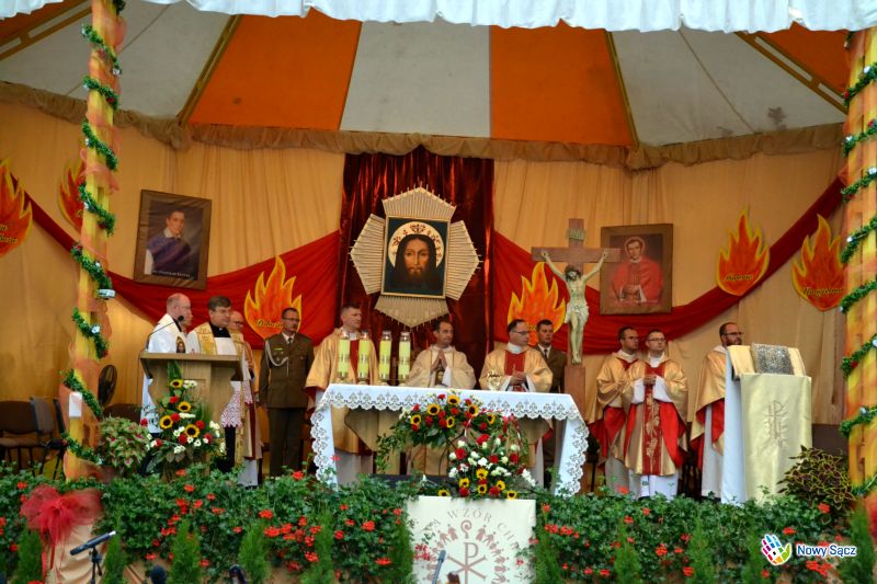 Mszy świętej w intencji Ojczyzny przewodniczył ksiądz dr Paweł Nowogórski - dyrektor Centrum Edukacji Młodzieży imienia księdza Jerzego Popiełuszki w Górsku koło Torunia, który podkreślał w swoim kazania, że relikwie, które trafiły do Nowego Sącza, są relikwiami pierwszego stopnia.