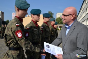 - Jestem przekonany, że rozpoczynając swoją dyrektorską karierę, będzie pan w sposób właściwy, godny i pełen oddania dbał o szkołę i efekty nauczania – mówił prezydent miasta Ryszard Nowak do dyrektora szkoły, a następnie zwrócił się do uczniów klas mundurowych, zrzeszonych w Związku Strzeleckim „Strzelec”: - Jesteście wizytówką miasta i jesteście znani nie tylko w Nowym Sączu, ale także w Polsce. Chcę powiedzieć, że kiedy zaczynaliśmy współpracę z obecnym dyrektorem dwanaście lat temu, ta formacja wyglądała zupełnie inaczej. Dzisiaj jestem dumny z tego, że właśnie w ten sposób reprezentujecie szkołę, nasze miasto. Hołdujecie tradycjom, jak również wartościom, które wszystkim sądeczanom są bardzo bliskie. Życzę wam znakomitych efektów, satysfakcji z tego, że jesteście „Strzelcami”, że jesteście uczniami tej szkoły i na dowód tego, że doceniam waszą pracę, wasze zaangażowanie, chcę wręczyć na ręce pana dyrektora Złoty Dukat Sędziwoja – to jest najwyższe wyróżnienie prezydenta miasta. Wierzę, że będzie to jakiś element mobilizujący, by jeszcze więcej z siebie dać i jeszcze więcej osiągnąć.
