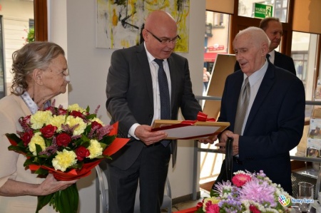 - Z okazji tego pięknego jubileuszu składam państwu najserdeczniejsze gratulacje oraz życzenia kolejnych wielu wspólnych lat przeżytych w dobrym zdrowiu, rodzinnym szczęściu i wzajemnej miłości. Życzę też pogody ducha na dalsze wspólne lata – mówił prezydent Ryszard Nowak, wręczając małżonkom kwiaty i upominek.