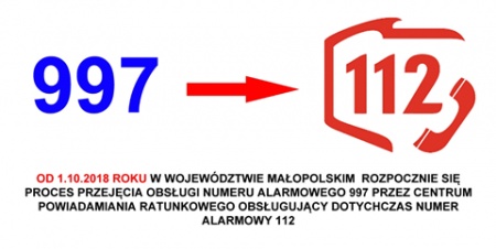 1 października 2018 r. o godz. 10.00 rozpoczął się proces przejmowania obsługi numeru alarmowego 997 przez Centrum Powiadamiania Ratunkowego w Krakowie, obsługujący obecnie numer alarmowy 112. Proces ten jest wynikiem udanego pilotażu jaki został przeprowadzony w województwie śląskim w 2017 r.