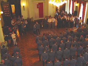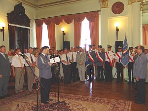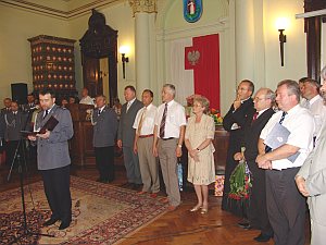 Z okazji święta policji w Ratuszu odbyło się spotkanie funkcjonariuszy garnizonu sądeckiego. Przybyli na nie parlamentarzyści, gospodarze miasta i powiatu, przedstawiciele samorządów z powiatu. Z Krakowa przybył zastępca komendanta wojewódzkiego Policji insp. Tadeusz Ciuruś. Gośćmi sądeczan byli koledzy policjanci z Troków, z Litwy.