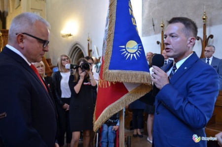 Dyrektor Grzegorz Rams, odbierając sztandar z rąk zastępcy prezydenta Wojciech Piecha, powiedział:
