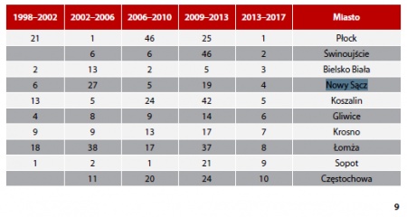 - To niewątpliwie sukces Nowego Sącza, który, wbrew opiniom krytyków, szczególnie głośnych w okresie przedwyborczym, rozwija się bardzo dobrze. Czwarte miejsce to naprawdę bardzo dobry wynik - komentuje wyniki rankingów Wojciech Piech.