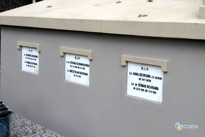 Trwająca od 11 sierpnia tego roku renowacja zabytkowego grobowca burmistrza Nowego Sącza, dr. Romana Sichrawy, dobiegła końca. Prace wykonała pracownia plastyczna i konserwatorska ARStec, pod kierunkiem konserwatora zabytków Józefa Steca. W piątek odbioru grobowca dokonał dyrektor Wydziału Kultury, Sportu, Komunikacji Społecznej i Promocji Józef Kantor wraz z pracownikami Urzędu Miasta Nowego Sącza.