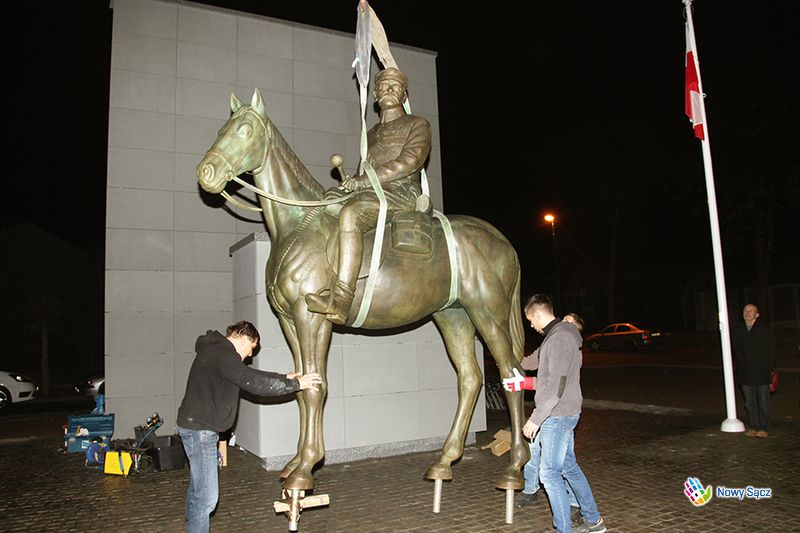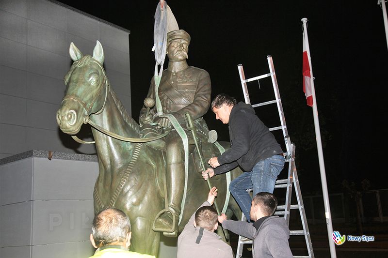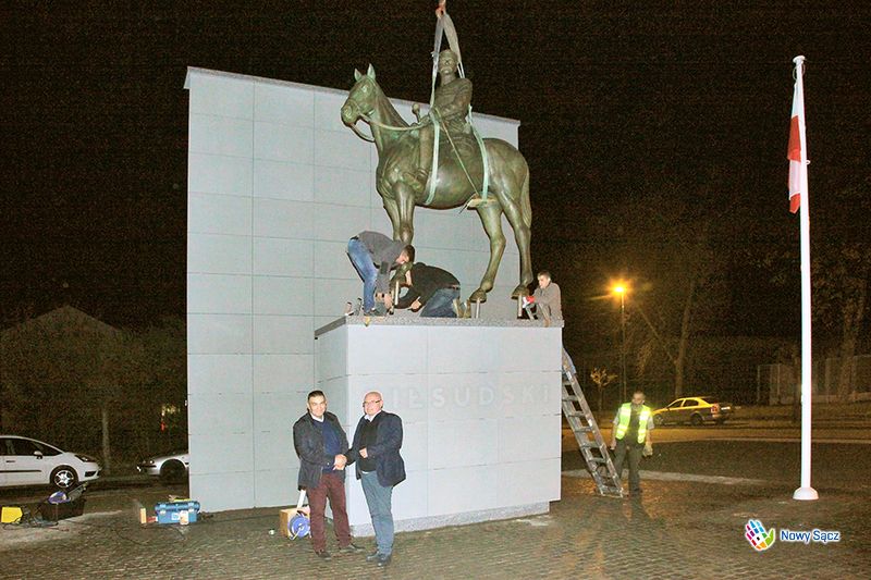 O upamiętnienie postaci marszałka Józefa Piłsudskiego, Honorowego Obywatela Miasta Nowego Sącza, zabiegało od kilku już lat Stowarzyszenie Nowosądecka Wspólnota. W ostatnim czasie prowadzone były zbiórki na pomnik. Okazały monument, ważący ok. tonę, został umiejscowiony na postumencie w piątkowy wieczór. Montaż nadzorował Piotr Piszczkiewicz, w którego pracowni artystycznej w Podłężu pod Krakowem, odlano pomnik.