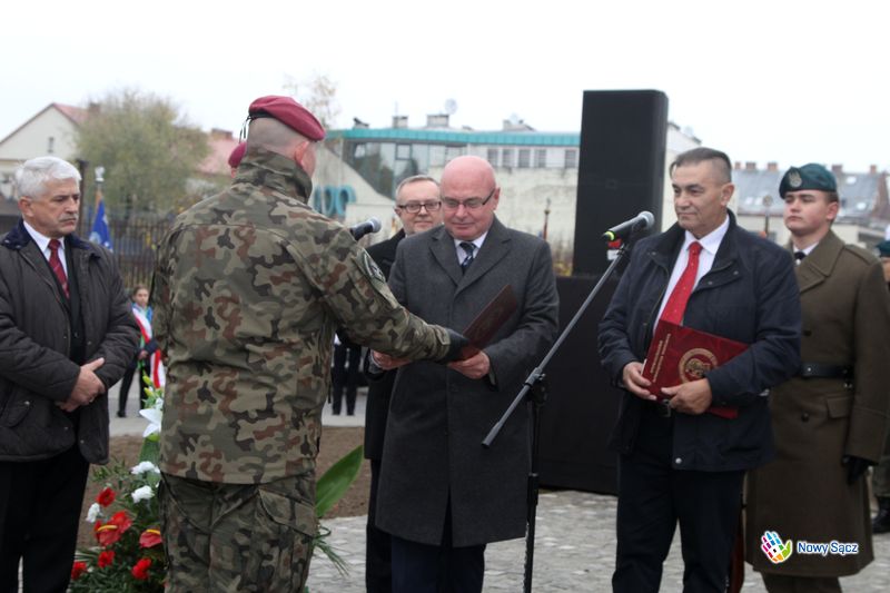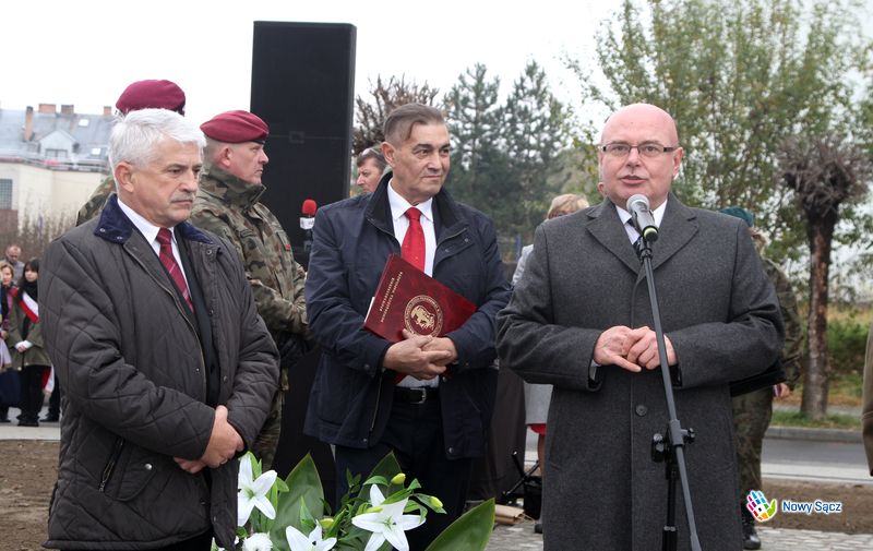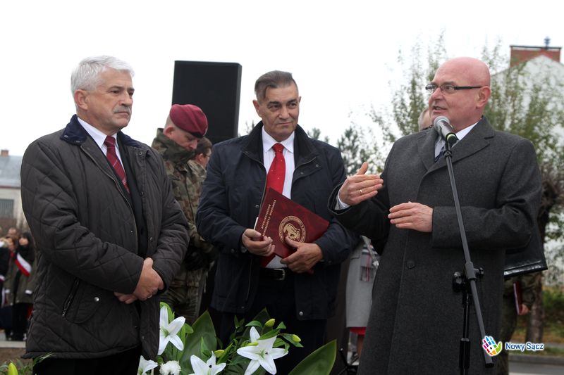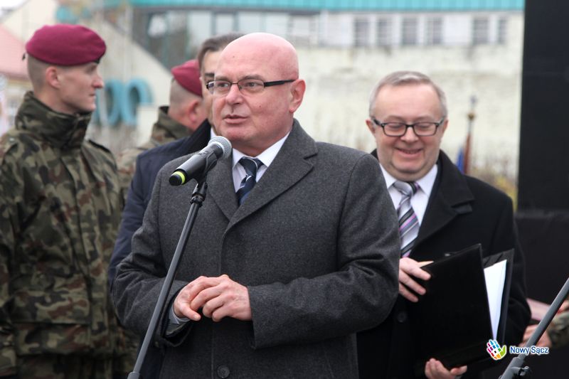 - 100 lat temu Polska odzyskała niepodległość. Wskrzesicielem państwa był nie kto inny tylko Józef Piłsudski. Oczywiście można wymieniać jeszcze wiele innych postaci. Blisko 80 lat temu sądeczanie podjęli decyzję o budowie pomnika. Niestety z przyczyn niezależnych, z racji zawirowań politycznych, historycznych, do tego nie doszło. Aż wreszcie w roku 2012 pojawiła się idea, zmaterializowana w formie Społecznego Komitetu Budowy Pomnika Marszałka Józefa Piłsudskiego. Wykonał on ciężką, mozolną pracę. Nie wszyscy zdają sobie sprawę z tego, że jest to pewnego rodzaju paradoks. Wszyscy wiemy, co stało na tym miejscu jeszcze nie tak dawno. Dziś stoi tu Piłsudski. Przypomnę, że niedawno pochowaliśmy powtórnie generała Bronisława Pierackiego, jego bliskiego współpracownika, można powiedzieć – przyjaciela, który stracił życie, został zamordowany w Warszawie. To miejsce staje się symboliczne nie tylko dla samych mieszkańców Nowego Sącza ale dla całej Sądecczyzny. Jestem wzruszony, kończę swoje urzędowanie jako prezydent i dzisiejsza uroczystość jest pewnego rodzaju zwieńczeniem mojej pracy. Dziękuję raz jeszcze inicjatorom – dodał prezydent i wyraził również wdzięczność dla darczyńców, którzy przekazywali datki w zbiórkach publicznych na rzecz budowy pomnika.