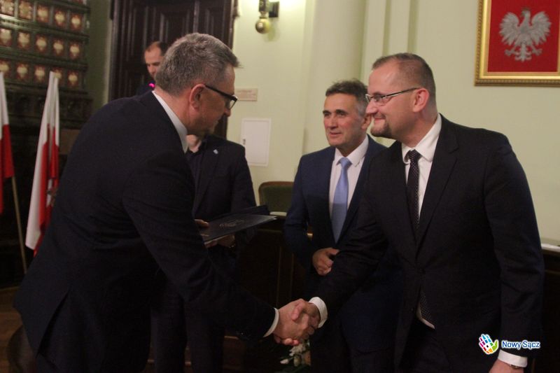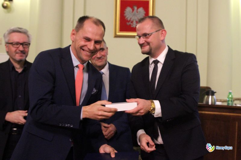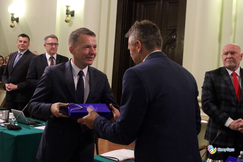Następnie wraz z członkami Prezydium Rady, wiceprzewodniczącymi Michałem Kądziołką, Tomaszem Cisoniem oraz Piotrem Lachowiczem, złożył podziękowania na ręce prezydenta miasta Nowego Sącza Ryszarda Nowaka.