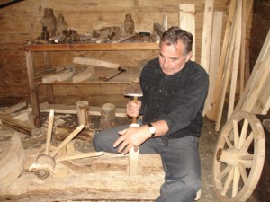Można też było się przyjrzeć tkaniu płótna lnianego, wyplataniu koszy z wikliny, a także interesującej pracy kołodzieja, który na przed widzami wykonywał drewniane koła.