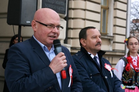 - Szanowni Państwo dyrektorzy, drodzy opiekunowie grup, nauczyciele, kochane dzieci, także te najmłodsze, z sądeckich przedszkoli, drodzy uczniowie. Niezmiernie się cieszę, myślę, że ta że dzisiaj w ten piękny dzień, spotykamy się w tym wyjątkowym miejscu dla sądeczan, w szczególności dla kolejnych pokoleń sądeczan. Właśnie dla Was. Bardzo się cieszę, że właśnie w ten sposób możemy podsumować wszystkie inicjatywy, które Państwo podjęliście, nie tylko w ramach Turnieju Szkół, który był realizowany przez cały rok, ale szereg różnych inicjatyw podejmowanych przez wszystkie jednostki oświatowe a upamiętniających to wyjątkowe wydarzenie, jakim jest stulecie odzyskania przez Polskę niepodległości. Bardzo wam dziękuję za te wszystkie piękne inicjatywy i tym, że mamy wolną, niepodległą Polskę - powiedział dyrektor Wydziału Edukacji Józef Klimek, po czym, wraz z Zespołem Regionalnym „Sądeczoki” z Pałacu Młodzieży, wszyscy zaśpiewali „Mazurka Dąbrowskiego”. Uczniowie złożyli również wiązanki kwiatów pod pomnikiem. Wartę honorową pełnili sądeccy Strzelcy.