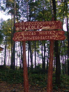 W Lesie Falkowskim, przy skrzyżowaniu trzech dróg leśnych (tras spacerowych), o lokalnej nazwie "Na Kole", tj. drogi od kościółka św. Antoniego na Falkowej, drogi od ul. Botanicznej przechodzącej przez ogródki działkowe na Falkowej oraz traktu prowadzącego starym torem saneczkowym do stadionu sportowego w Piątkowej, oddano do użytku mieszkańców Nowego Sącza obiekt małej architektury -"Deszczochron na Kole".