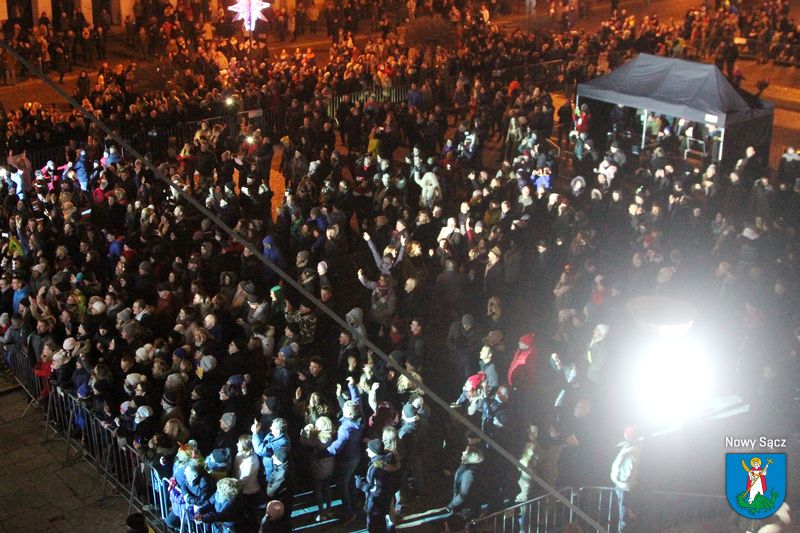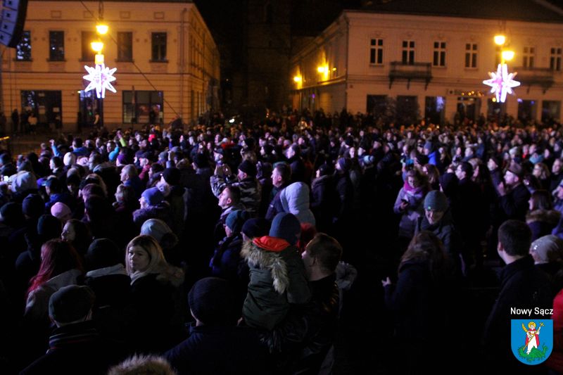 Sądeczanie bawili się już od godziny 22.30. Zabawa sylwestrowa, którą poprowadził Janusz Michalik z Miejskiego Ośrodka Kultury w Nowym Sączu, rozpoczęła się od koncertu zespołu Ble - Ble. Po nim wystąpił młody sądecki muzyk Janek Stosur. Najbardziej wyczekiwano jednak występu Urszuli, która zaśpiewała swoje największe przeboje, m.in. „Malinowy król”, „Konik na biegunach”, „Na sen”, czy „Totalna hipnoza”. Wraz z piosenkarką, obecną na polskiej scenie muzycznej już od 35 lat, utwory nuciła licznie zgromadzona sądecka publiczność.