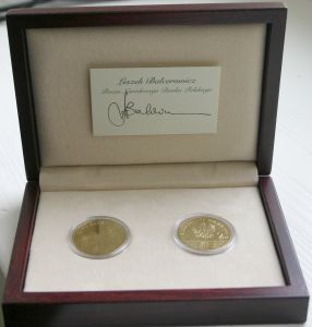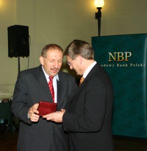 Monety specjalne prof. Leszek Balcerowicz wręczył prezydentowi J.A. Wiktorowi, rektorowi WSB-NLU Krzysztofowi Pawłowskiemu i prezesowi firmy Fakro, Ryszardowi Florkowi.