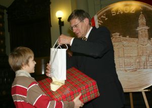 Gościom przybyłym do Ratusza towarzyszyły Wam maskotki – Sędziwojki, przypominające związaną silnie z Nowym Sączem postać Michała Sędziwoja, najwybitniejszego – obok Mikołaja Kopernika – polskiego uczonego na przełomie XVI i XVII wieku, słynącego również z doświadczeń alchemicznych.