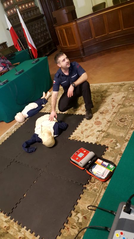 Dodatkowo w czasie szkolenia została omówiona w formie wykładu problematyka dotycząca właściwego zachowania się w czasie udzielania pierwszej pomocy dzieciom oraz osobom dorosłym, w tym zasad używania automatycznego defibrylatora zewnętrznego AED.