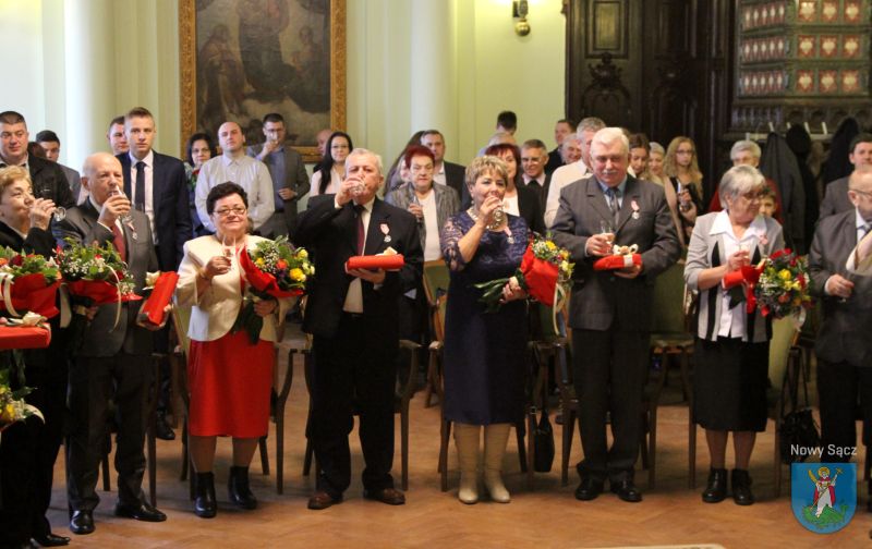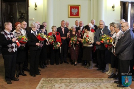 Prezydent Miasta Nowego Sącza Ludomir Handzel złożył gratulacje i życzenia kolejnych pięknych lat pożycia małżeńskiego oraz wszelkiej pomyślności trzynastu parom, świętującym swoje jubileusze Złotych Godów. Prezydent odznaczył również Jubilatów medalami za długoletnie pożycie małżeńskie, przyznanymi przez Prezydenta Rzeczpospolitej Polskiej Andrzeja Dudę.