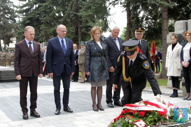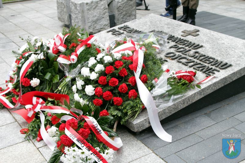 Kulminacyjnym punktem uroczystości było złożenie wiązanek kwiatów pod „Sądecką Pietą” przez delegacje oficjalne, kombatantów i młodzież. W imieniu władz miasta kwiaty złożyli wiceprezydent Magdalena Majka wraz z dyrektorami wydziałów: Komunikacji Społecznej i Kultury Marcinem Porębą, Bezpieczeństwa i Kontroli Wewnętrznej Mirosławem Świstem, Zarządzania Kryzysowego Krzysztofem Setlakiem i Komendantem Straży Miejskiej Ryszardem Wasilukiem.