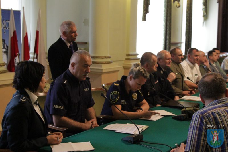 Dzisiaj (17 czerwca) w sali reprezentacyjnej nowosądeckiego ratusza odbyło się posiedzenie członków Miejskiego Zespołu Zarządzania Kryzysowego. Zgromadzonych na spotkaniu powitał Prezydent Miasta Nowego Sącza Ludomir Handzel oraz dyrektor Wydziału Zarządzenia Kryzysowego Krzysztof Setlak, po czym przedstawiono plan pracy w kontekście organizacji w naszym mieście akcji Bezpieczne Wakacje 2019.