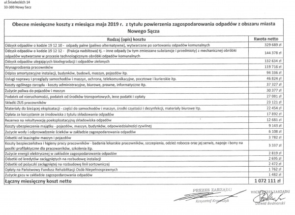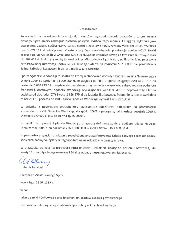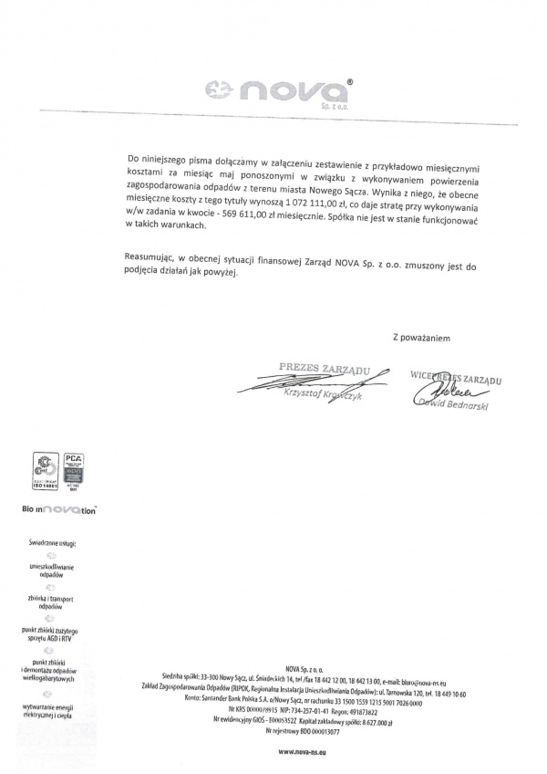 W przypadku przyjęcia rozwiązania przedłożonego przez Prezydenta Miasta Nowego Sącza nie będzie konieczna podwyżka opłaty za zagospodarowanie odpadów w bieżącym roku.