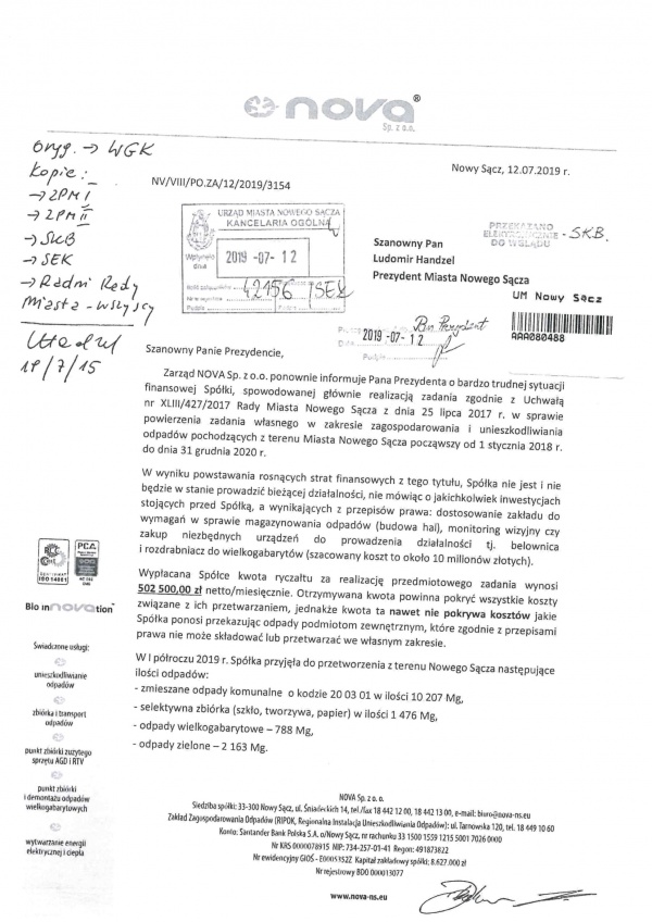 W związku z powyższym władze miasta zaproponowały przesunięcie budżetowe polegające na przesunięciu subsydiów ze spółki Sądeckie Wodociągi do spółki NOVA – począwszy do miesiąca sierpnia 2019 r. w kwocie 570 000 zł plus koszt VAT tj. 45 600 zł .