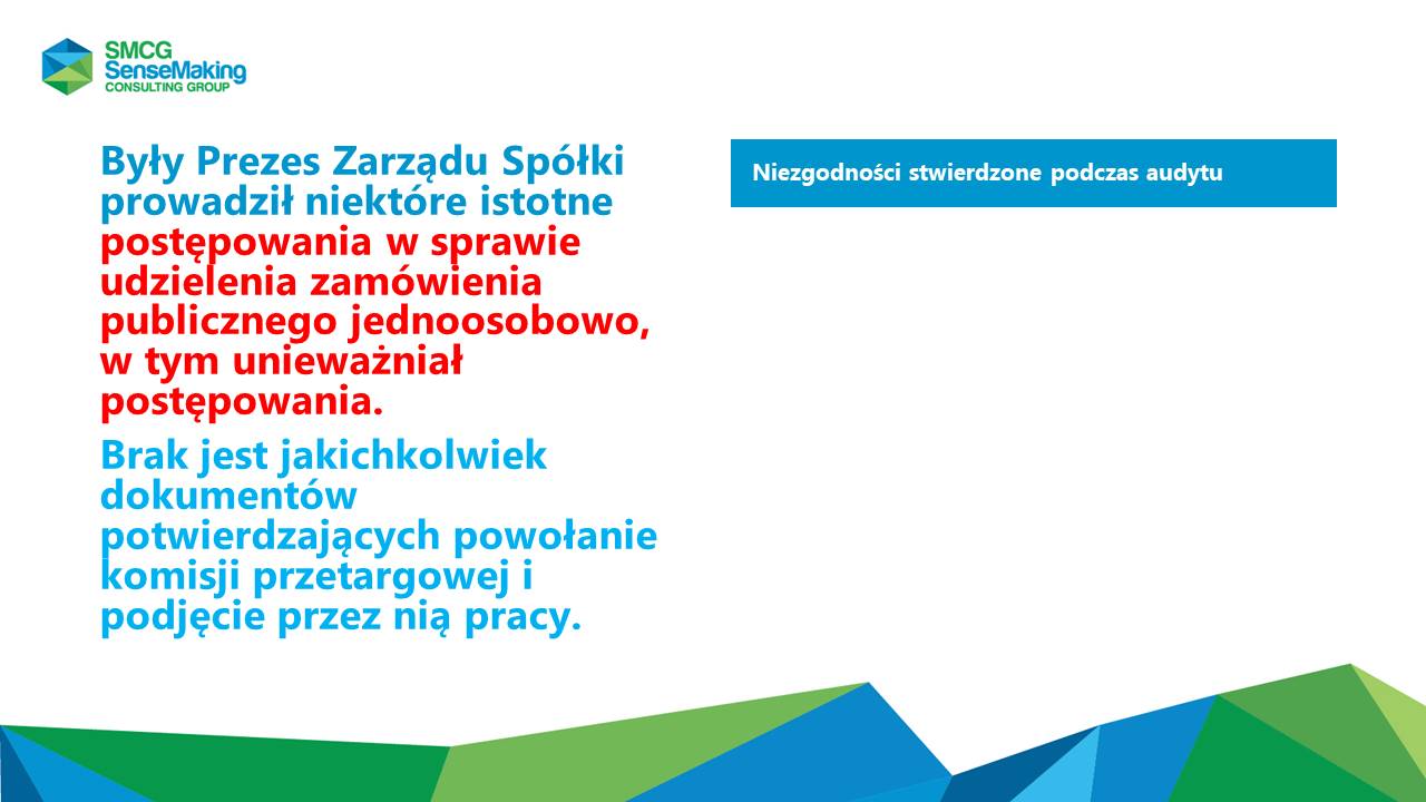 Były Prezes Zarządu Spółki prowadził niektóre istotne postępowania w sprawie udzielenia zamówienia publicznego jednoosobowo, w tym unieważniał postępowania
