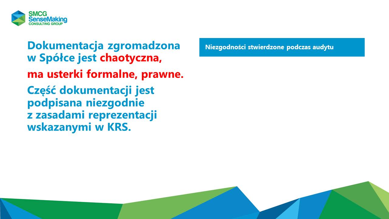 Dokumentacja zgromadzona w Spółce jest chaotyczna, ma usterki formalne, prawne