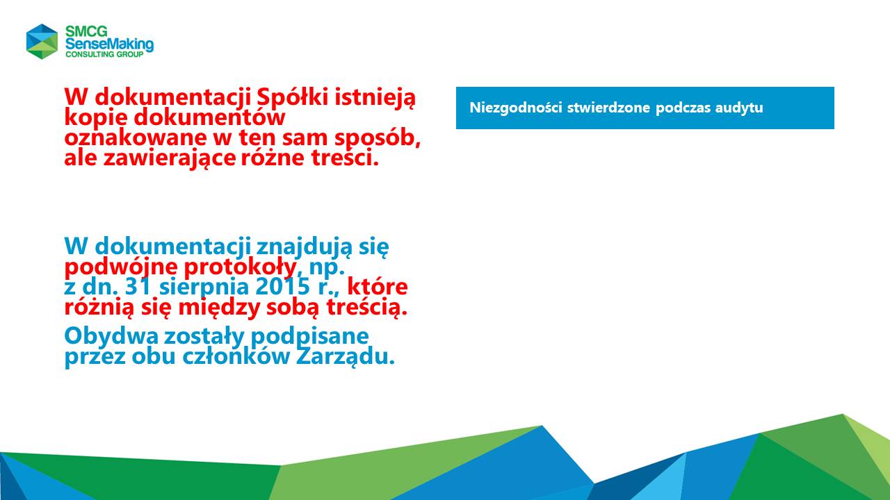 W dokumentacji Spółki istnieją kopie dokumentów oznakowane w ten sam sposób, ale zawierające różne treści