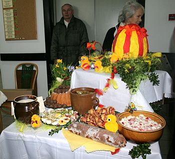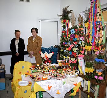Pieczony zając, pasztet z królika, szynka w chlebie, kolorowe koguciki, kurczaki, mazurki i „wielkanocne baby” – takie min. potrawy prezentowano podczas V Konkursu Palm i Stołów Wielkanocnych, jaki odbył się w Domu Pomocy Społecznej przy ulicy Nawojowskiej 155.