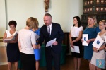 - Bardzo dobrze, że młodzi ludzie podnoszą swoje kwalifikacje i się rozwijają – mówił prezydent Ludomir Handzel. – Zdaję sobie sprawę z roli jaką nauczyciele pełnią w procesie dydaktycznym i wychowawczym. To od pedagoga zależy, czy dzieci lubią poszczególne przedmioty. Jeżeli ktoś lubi dany przedmiot to chce się w nim rozwijać, a czasem wiązać z tym również swoją karierę zawodową. Chcę podkreślić Państwu, że to co macie w głowie i przekazujecie dzieciom i młodzieży, tego wam nikt nie odbierze. Dziękuję, że przynajmniej w tak symboliczny sposób mogę uhonorować Państwa pracę.