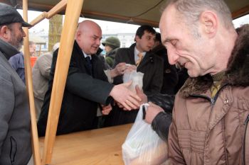 „Zwyczaj dzielenia się jajkiem, w niedzielny poranek- to tradycja pielęgnowana w wielu sądeckich domach. Zatem mam nadzieję, że świąteczne życzenia trafią wraz z tymi produktami do wielu rodzin. Po za tym chcemy, aby święta upłynęły wszystkim szczęśliwie, aby nikt nie zasiadł do pustego stołu. Stąd oprócz innych akcji charytatywnych, w których uczestniczy miasto, ta dzisiejsza, na sądeckim rynku”- mówił prezydent Ryszard Nowak rozdając mieszkańcom świąteczne specjały.