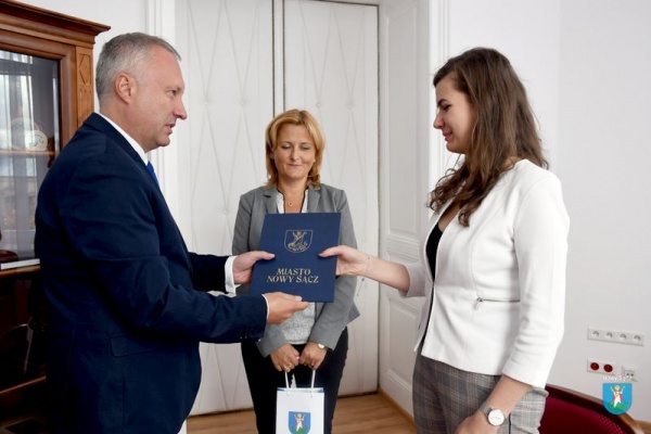 Prezydent Handzel w obecności wiceprezydent Magdaleny Majki pogratulował utalentowanej absolwentce sukcesów i życzył kolejnych, a te z pewnością przyjdą. Magdalena Kościółek wybiera się bowiem na studia do Oksfordu, gdzie będzie studiować historię nowożytną. Historia pasjonuje Magdalenę od dawna, a dowodem, w jakim stopniu opanowała wiedzę w tym temacie, jest zdobycie II miejsca i tytułu laureatki XIV Ogólnopolskiej Olimpiady Historycznej 2018. Ma już na koncie publikacje historyczne.