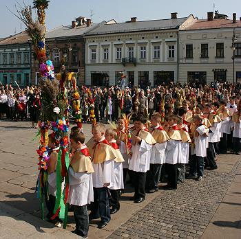 O godzinie 10.45, na płycie sądeckiego Rynku, zostały poświęcone palmy sądeczan, którzy przyszli świętować pamiątkę wjazdu Chrystusa do Jerozolimy. Ksiądz prałat dr Waldemar Durda poświęcił nie tylko te palmy, które zostały przez mieszkańców miasta przyniesione na Rynek, ale także tą największą – podobno najbardziej urodziwą w Polsce, górującą nad sądecką starówką.
