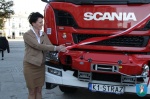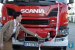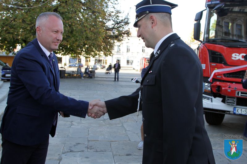 - Szanowni państwo, witam wszystkich bardzo serdecznie, szczególnie oczywiście bohaterów dzisiejszego spotkania – oficjalnego przekazania wozu bojowego dla strażaków OSP Biegonice, właściwie naszej najmocniejszej formacji. Witam także przedstawicieli województwa na czele z panią radną Urszulą Nowogórską, którą poproszę, żeby była matką chrzestną dzisiejszej uroczystości – powitał gości prezydent Nowego Sącza Ludomir Handzel.