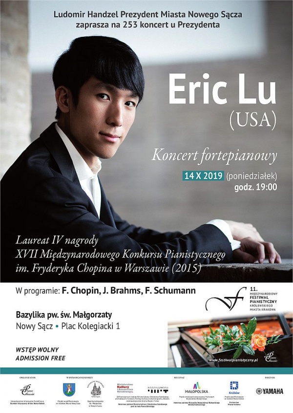 Eric Lu zagra w nowosądeckiej bazylice utwory Johannesa Brahmsa, Roberta Schumanna i Fryderyka Chopina. Amerykański pianista rozpoczął naukę gry na fortepianie w wieku sześciu lat i studiuje nadal w Curtis Institute of Music w Filadelfii. Zdobył wiele nagród na międzynarodowych konkursach, między innymi w Eppan (Włochy), Moskwie i Miami. Ma 22 lata.