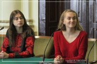 - Witam was bardzo serdecznie w sali obrad Rady Miasta Nowego Sącza – powiedziała na wstępie wiceprezydent miasta Magdalena Majka. – Bardzo się cieszę, że właśnie dzisiaj możemy spotkać, ponieważ macie okazję siedzieć przy stołach w takiej samej konfiguracji, w takim samym ułożeniu stołów, jak radni miasta Nowego Sącza podczas obrad. Jak widzicie, sala ratuszowa jest salą zabytkową, bardzo pięknym miejscem, i jest wykorzystywana do różnych wydarzeń, nie tylko do posiedzeń Rady Miasta. Odbywają się tutaj również śluby, koncerty, wykłady i inne wydarzenia – wyjaśniała pani wiceprezydent.
